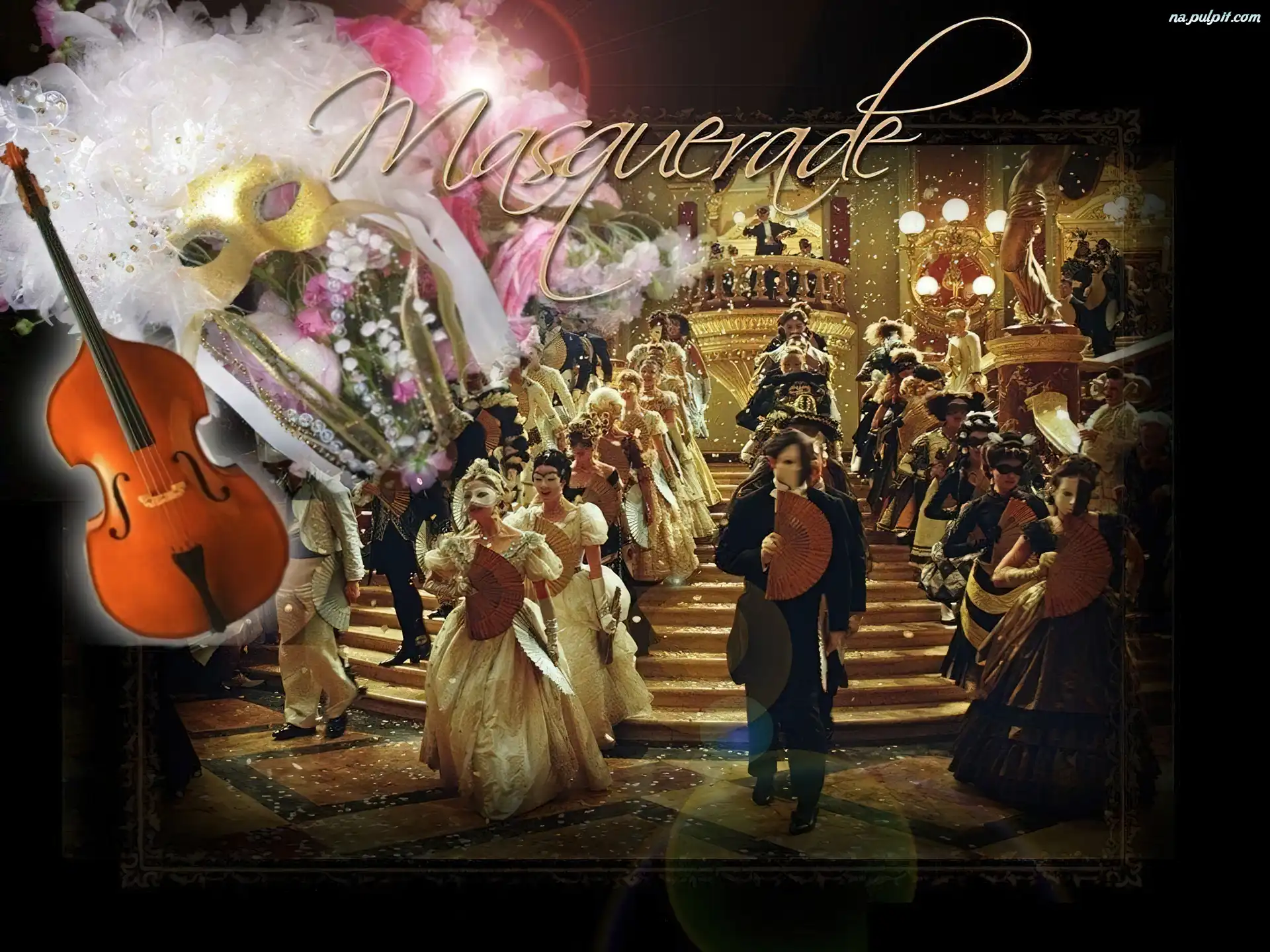 skrzypce, maski, bal, Phantom Of The Opera, postacie Na Pulpit