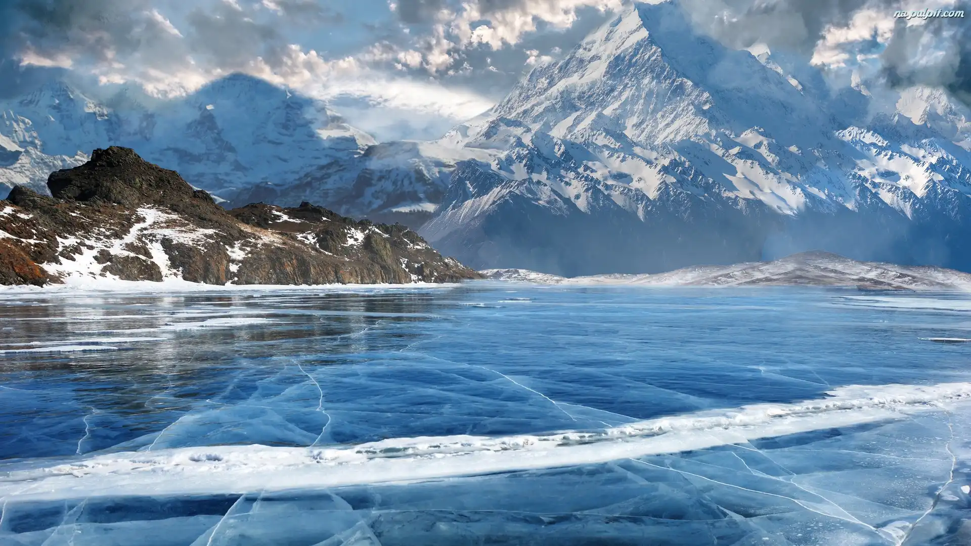 Matte Painting, Góry, Jezioro, Zamarznięte, Zima Na Pulpit