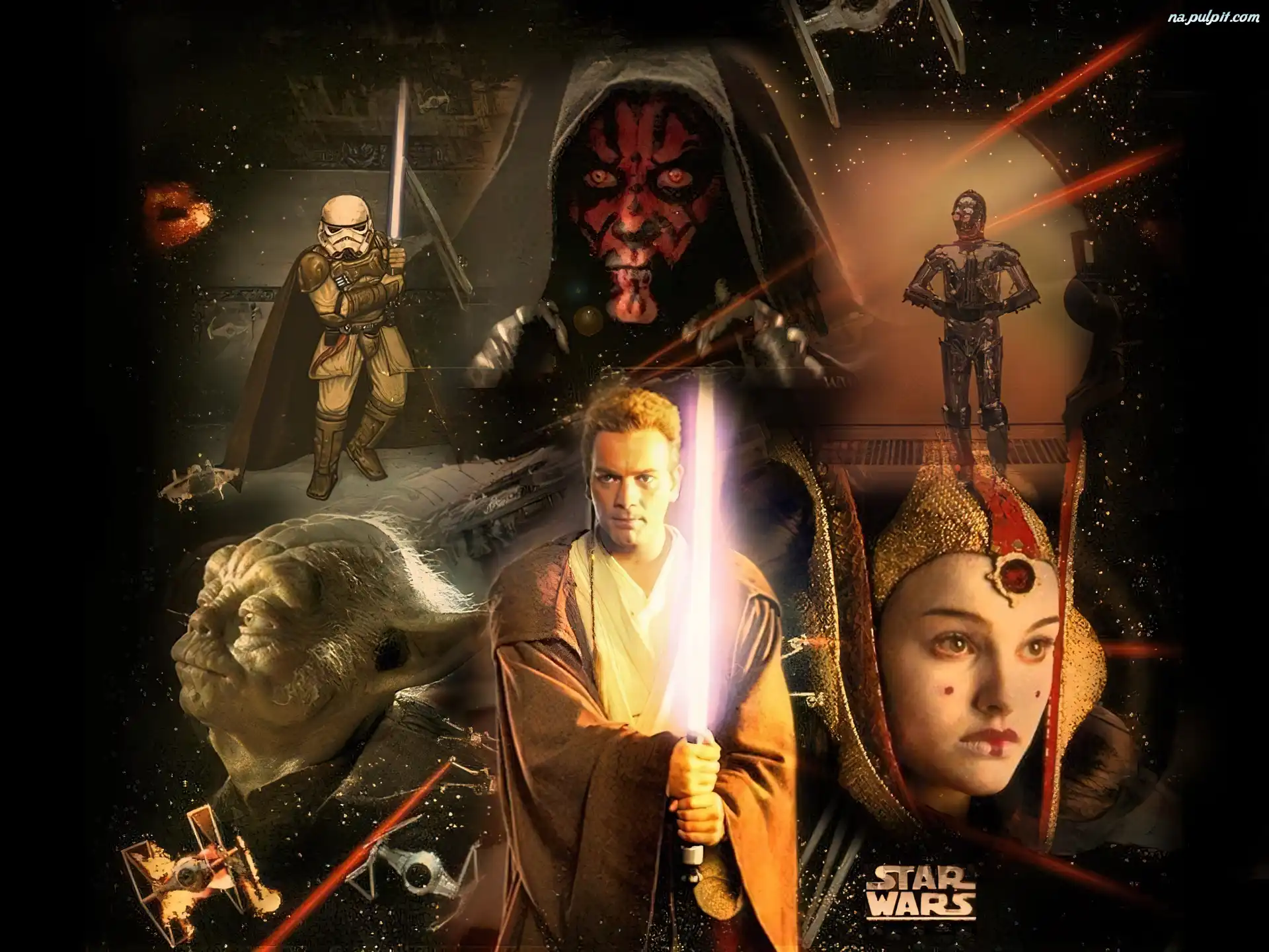 Ewan McGregor, Star Wars, Yoda, laser, Natalie Portman Na Pulpit