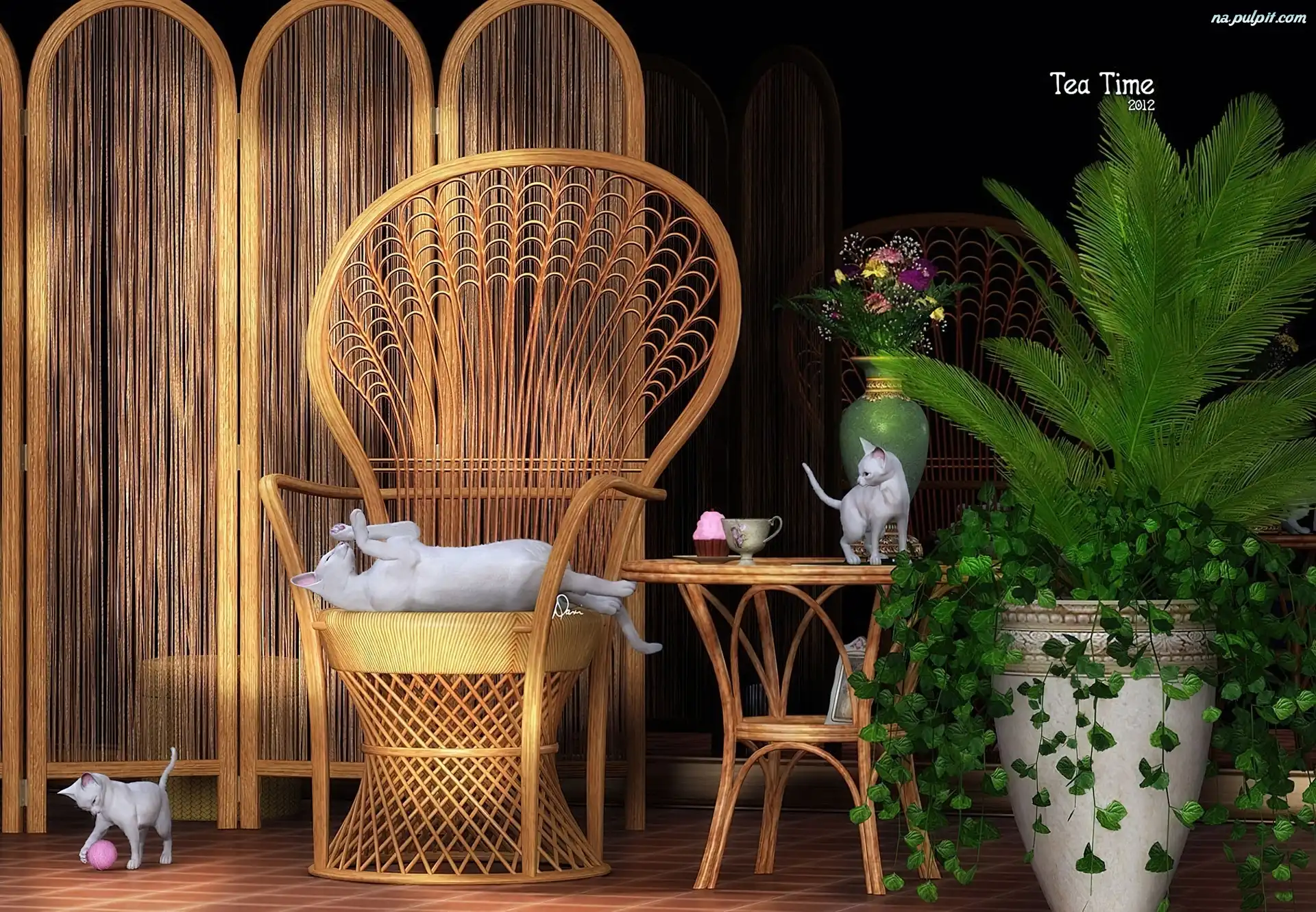 Meble, Rośliny, Koty, Wiklinowe Na Pulpit