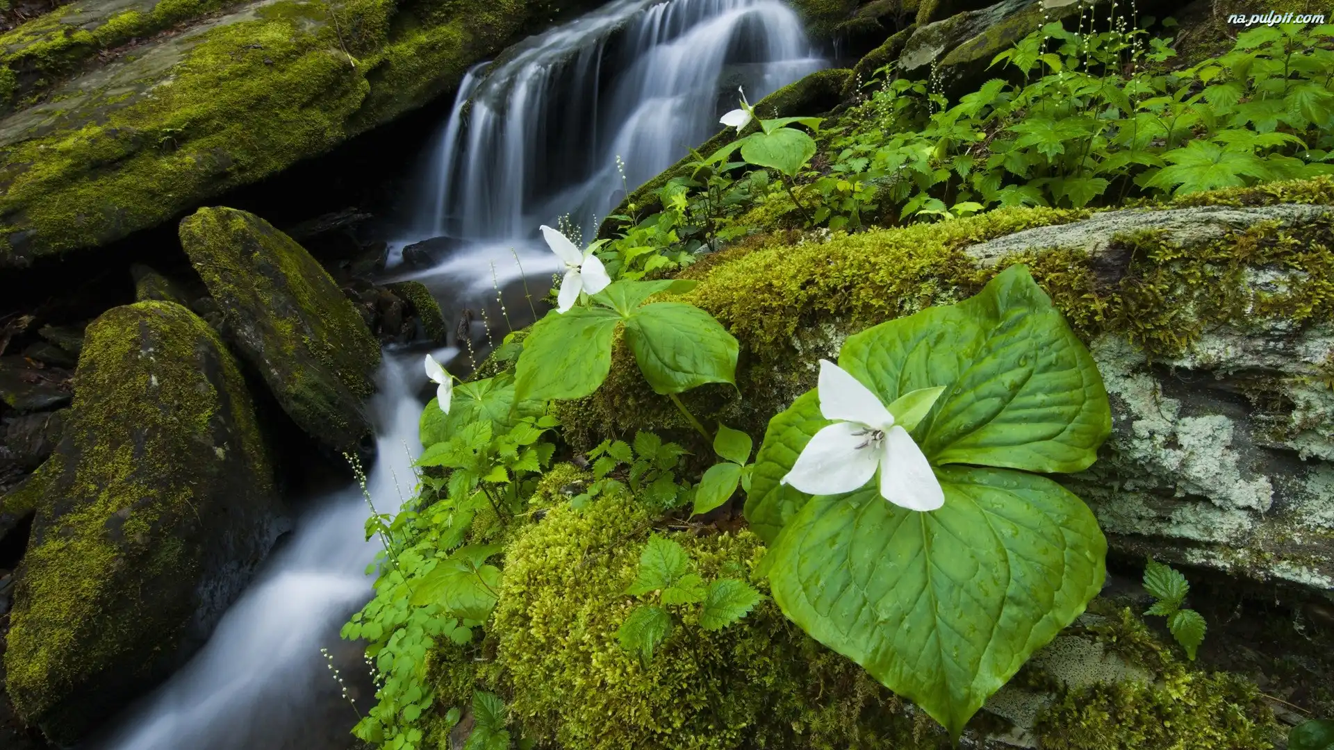 Mech, Potok, Górski, Kwiaty Na Pulpit