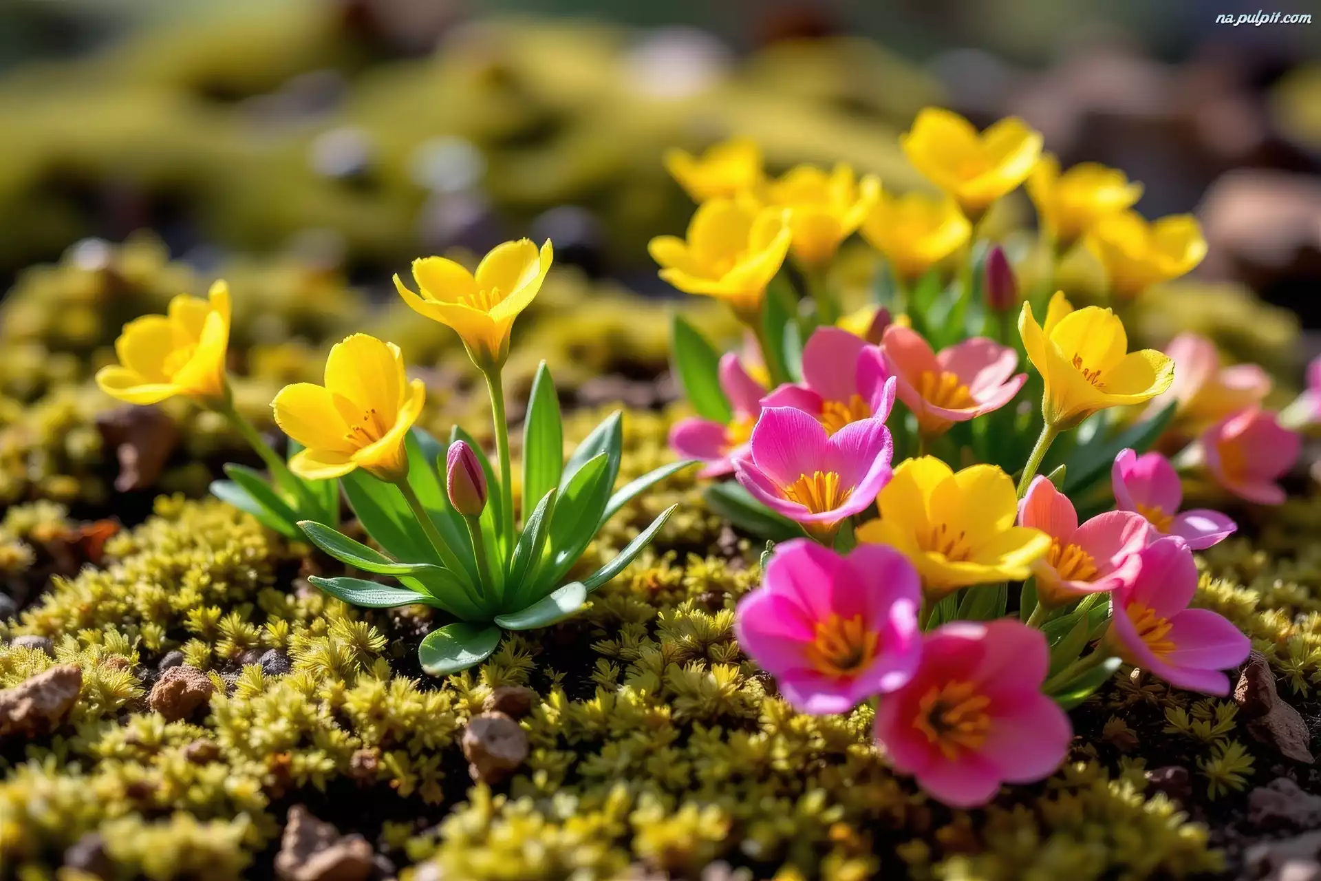 Różowe, Żółte, Kwiaty, Mech Na Pulpit