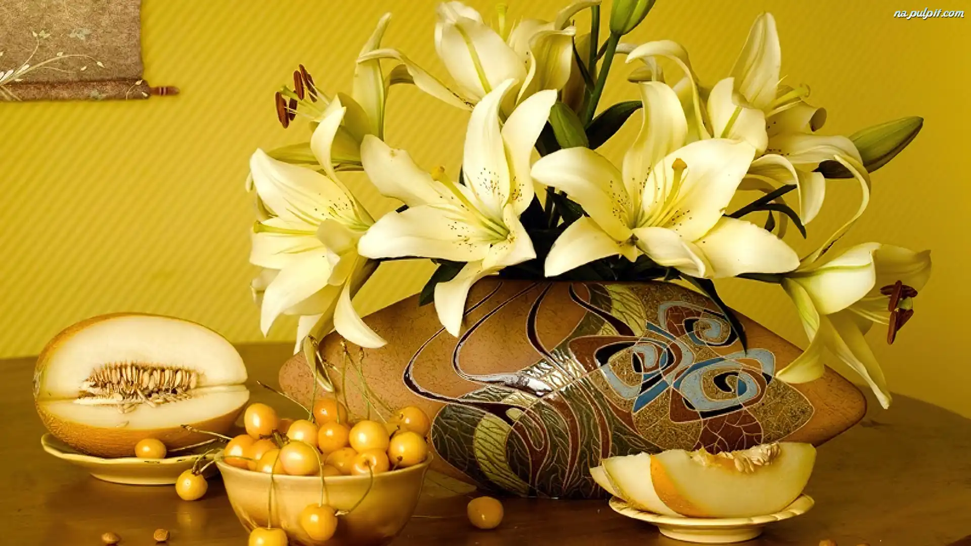 Melon, Piękny, Lilie, Żółte, Flakon Na Pulpit