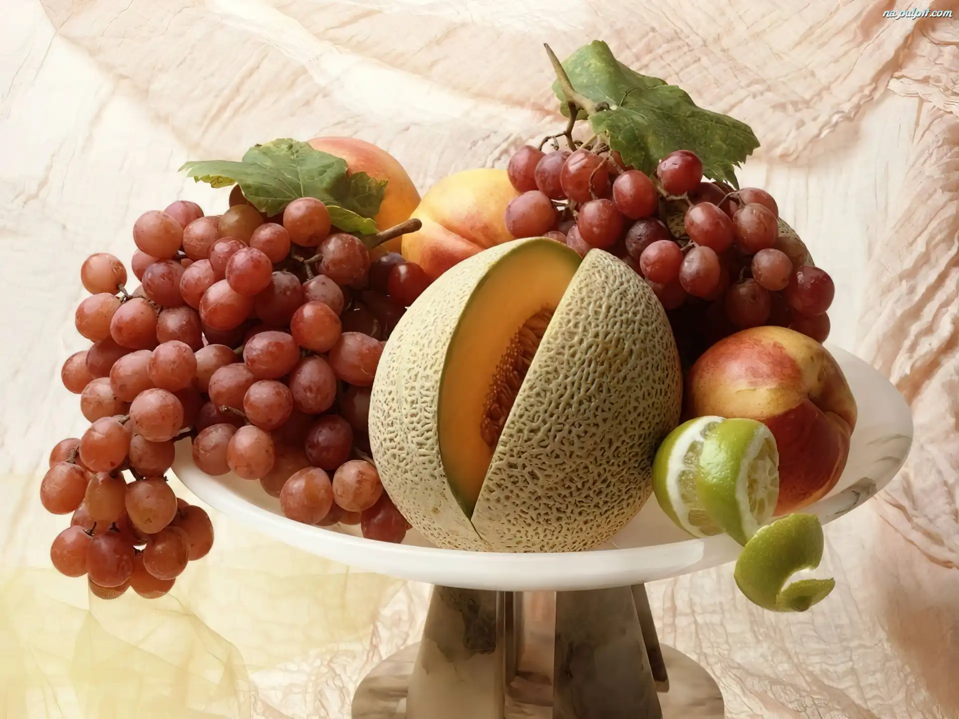 Melon, Winogrona, Owoce, Smaczne, Brzoskwinie Na Pulpit