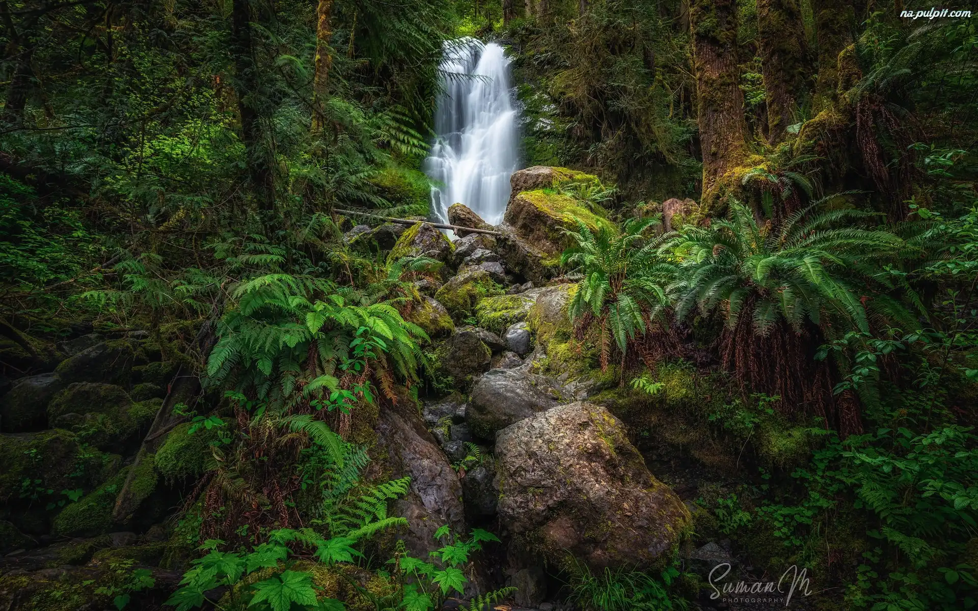 Paprocie, Wodospad, Merriman Falls, Stan Waszyngton, Stany Zjednoczone, Kamienie, Las, Roślinność Na Pulpit |