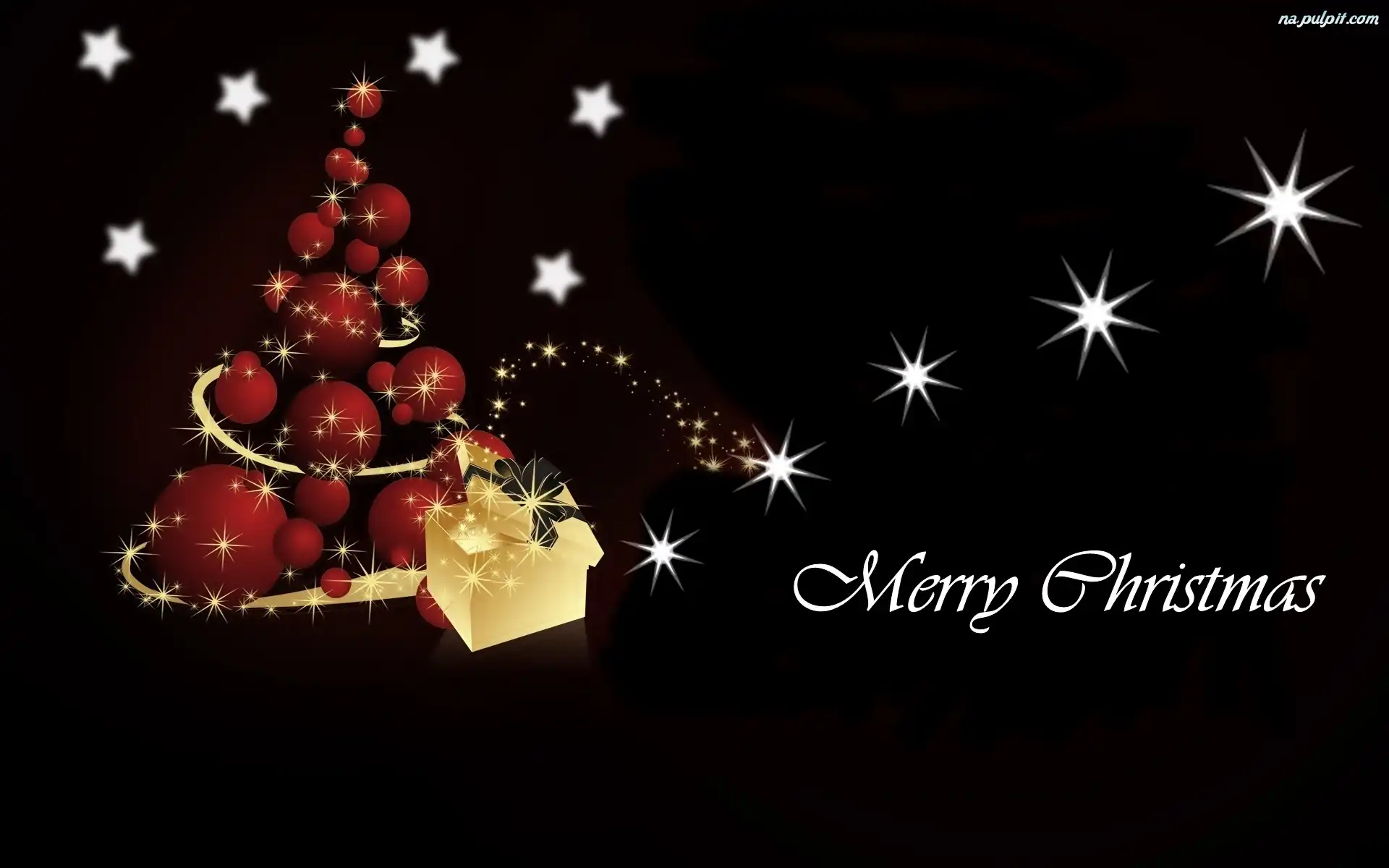 Merry Christmas, Prezent, Choinka, Gwiazdy Na Pulpit