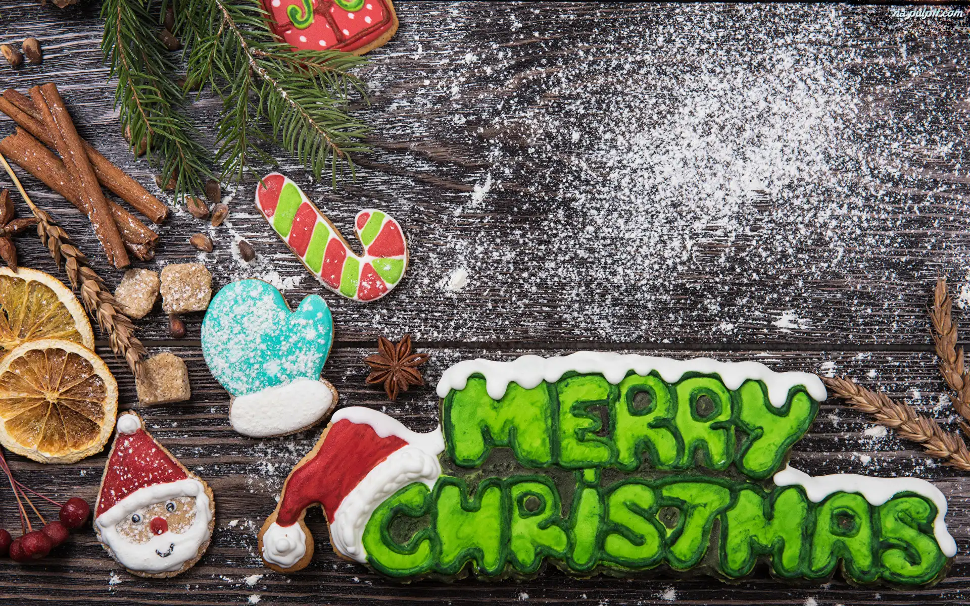 Cynamon, Merry Christmas, Napis, Boże Narodzenie, Pierniczki