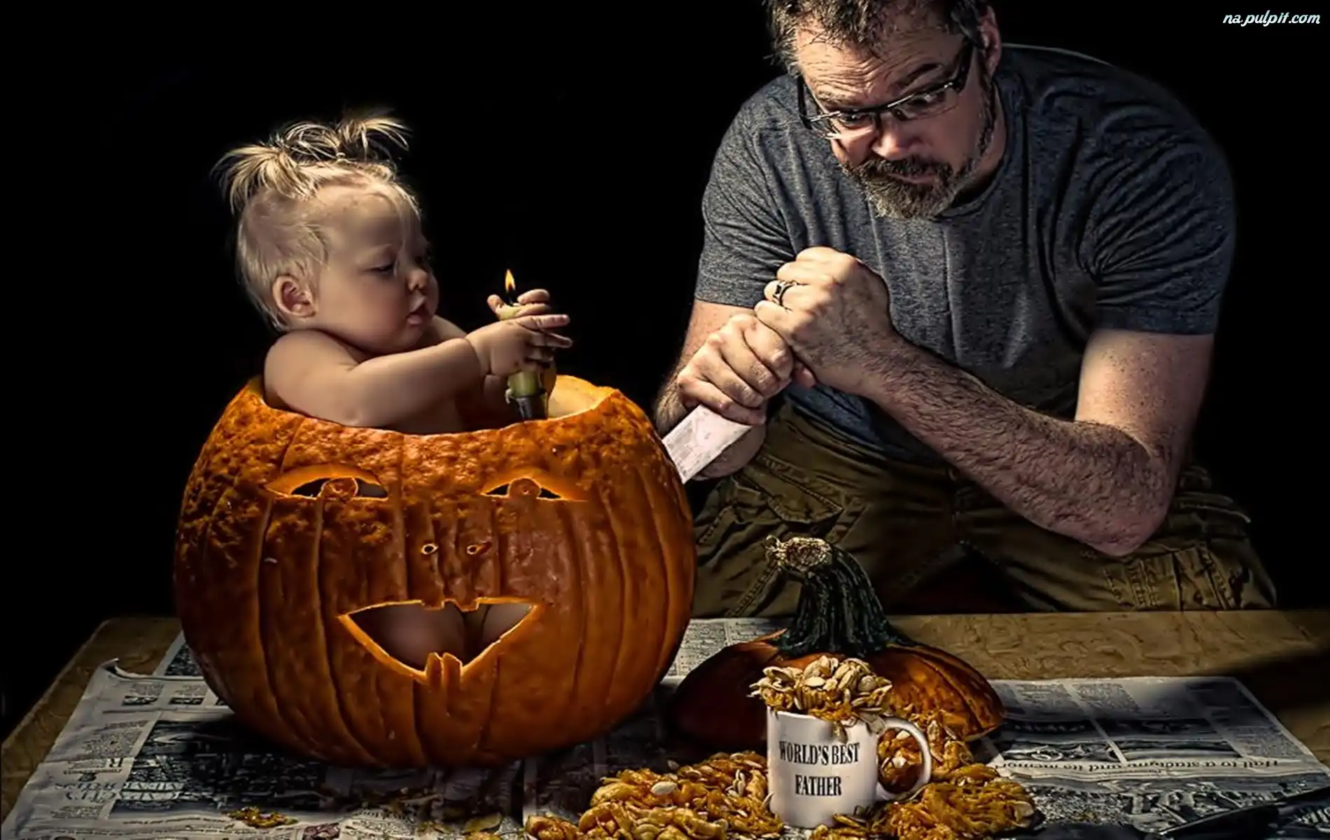 Dziecko, Mężczyzna, Dynia