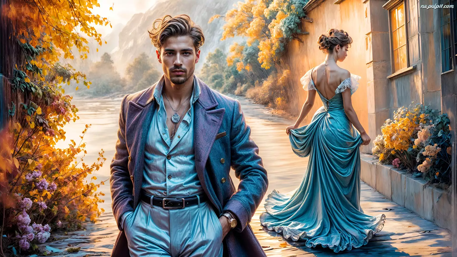 Jesień, Mężczyzna, Kobieta, Grafika, Dom Na Pulpit