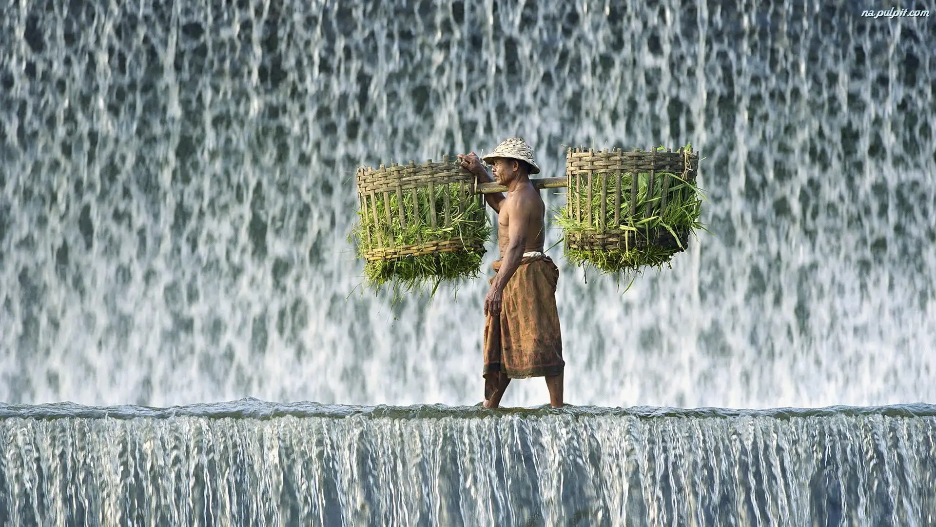 Kosze, Mężczyzna, Wodospad Na Pulpit