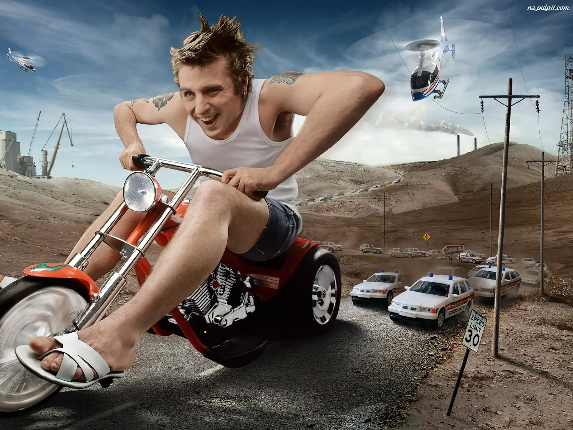 Pościg, Mężczyzna, Motorek Na Pulpit