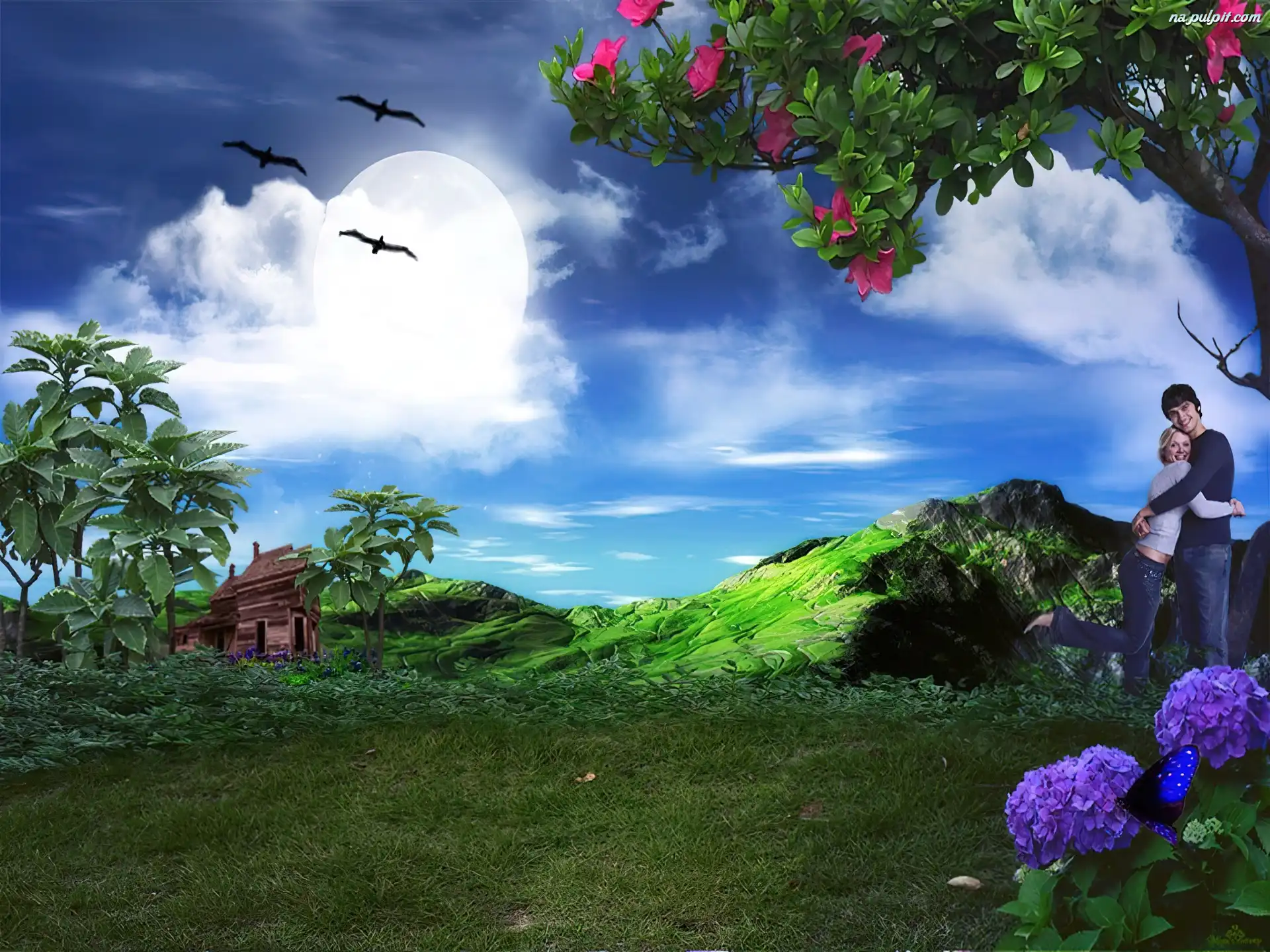 Mężczyzna, Kwiaty, Trawa, Kobieta