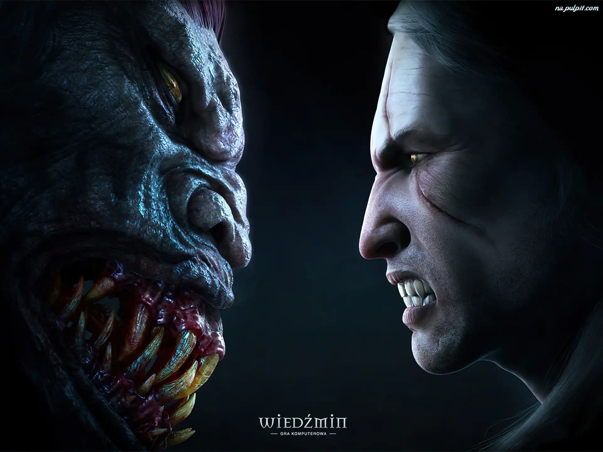 mężczyzna, kły, potwór, The Witcher, zęby Na Pulpit