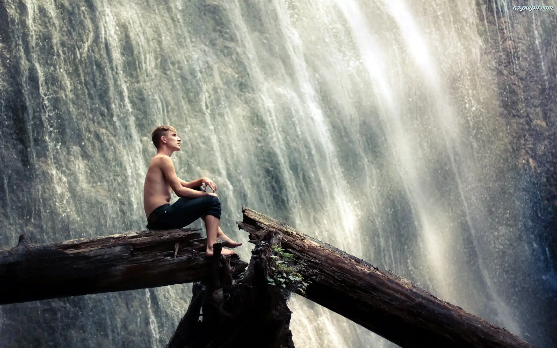 Wodospad, Mężczyzna, Drzewo Na Pulpit