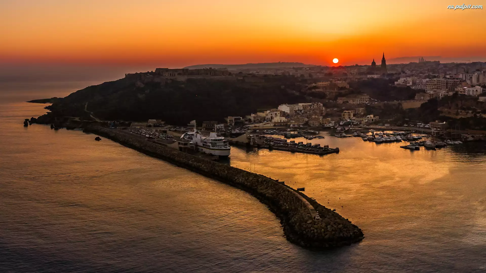 Malta, Przystań, Wyspa Gozo, Wschód słońca, Zatoka, Port, Mgarr Na Pulpit