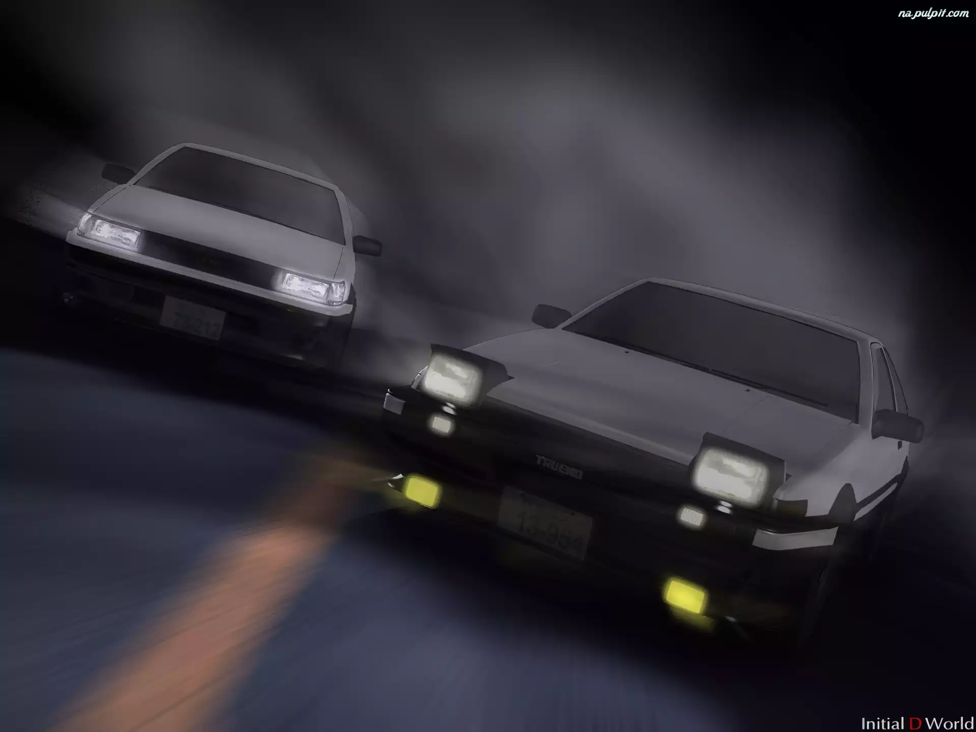 mgłą, wyścig, Initial D, samochody Na Pulpit
