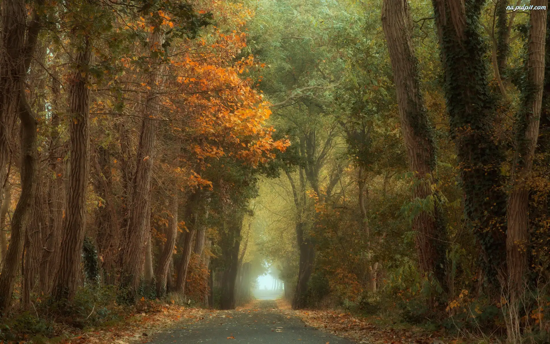 Mgła, Jesień, Drzewa, Droga Na Pulpit