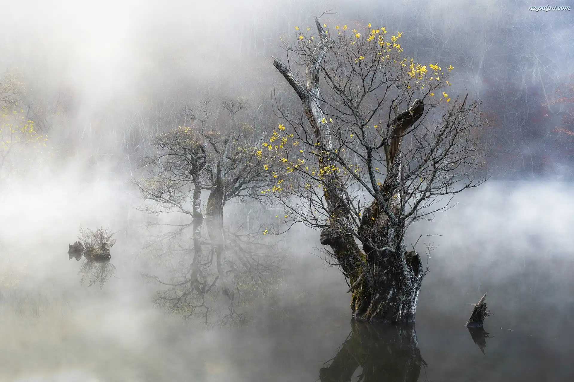 Mgła, Jezioro, Drzewa, Poranek Na Pulpit