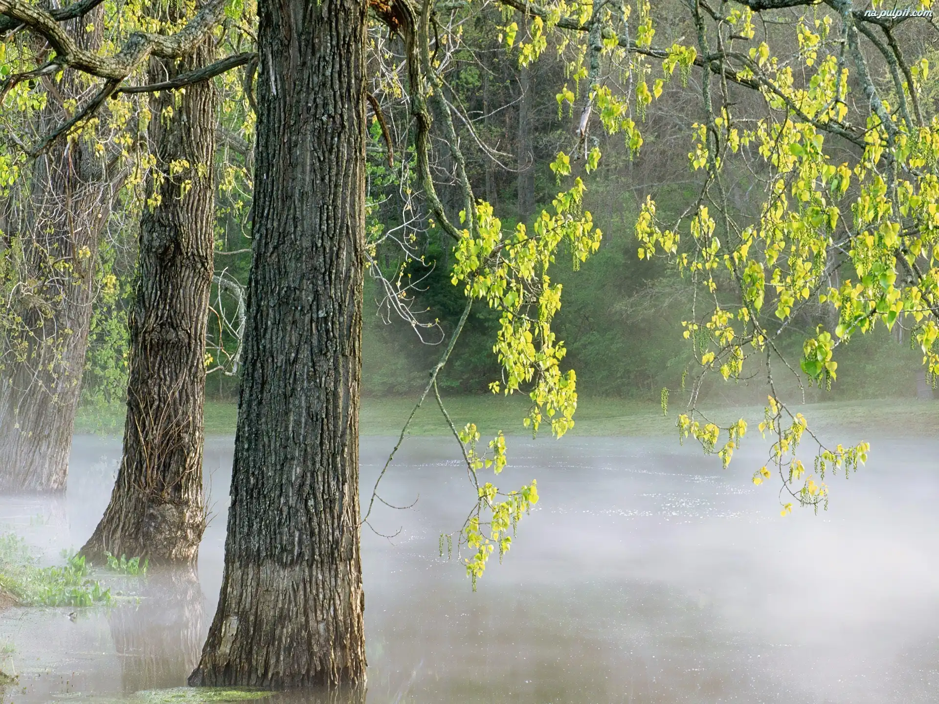 Mgła, Zielone, Drzewa, Listki Na Pulpit