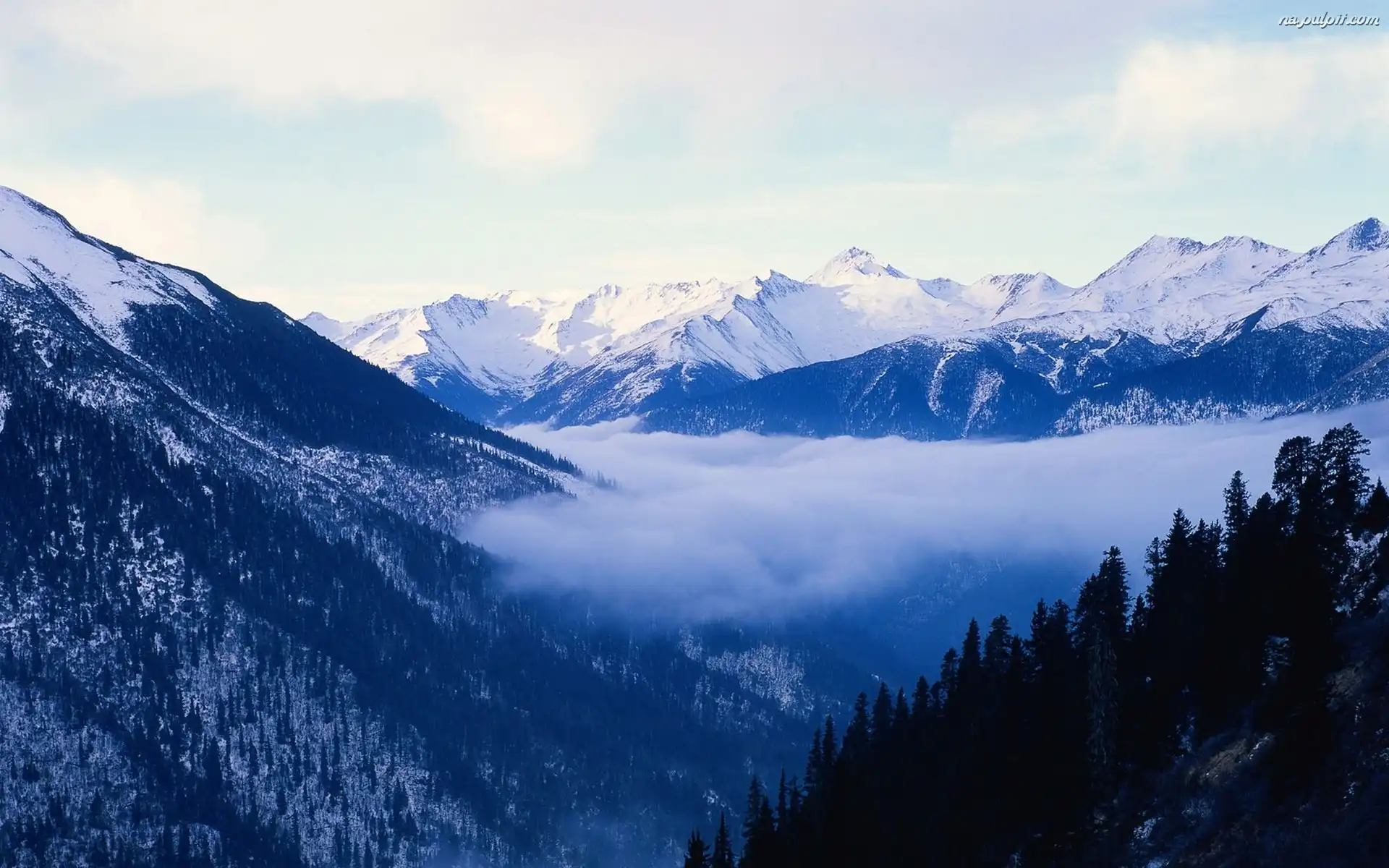 Mgła, Szczyty, Ośnieżone, Góry, Las Na Pulpit