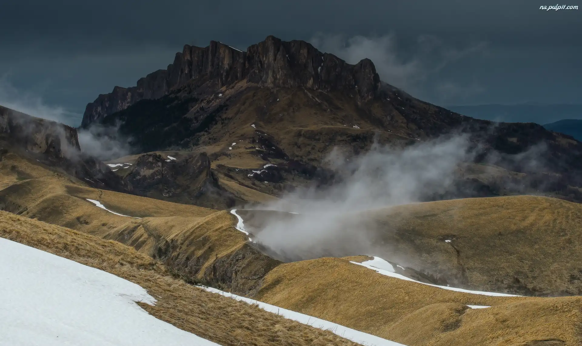 Mgła, Śnieg, Skały, Góry, Opadająca Na Pulpit
