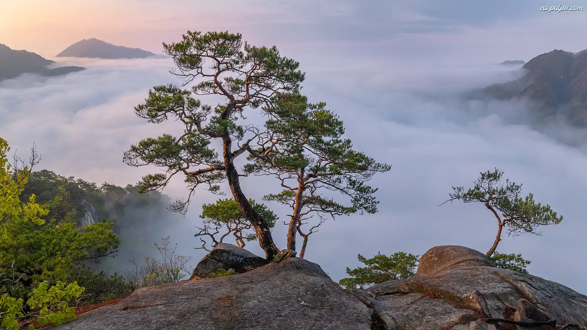 Góry, Sosna, Skały, Mgła Na Pulpit