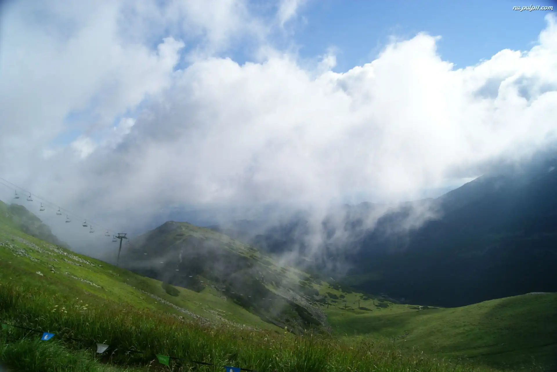 Mgła, Krzesełkowy, Wyciąg, Góry, Chmury Na Pulpit