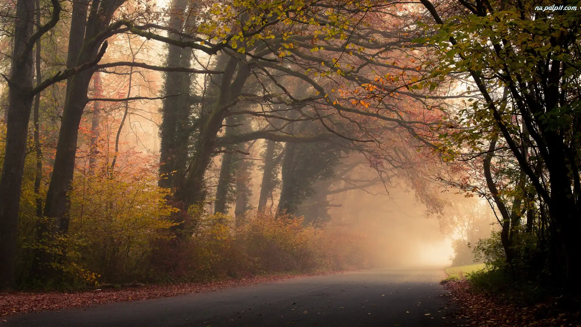 Mgła, Droga, Las, Jesień, Drzewa Na Pulpit