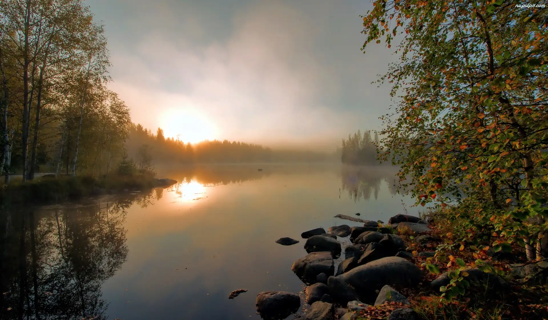 Mgła, Jezioro, Świt, Jesień, Las Na Pulpit