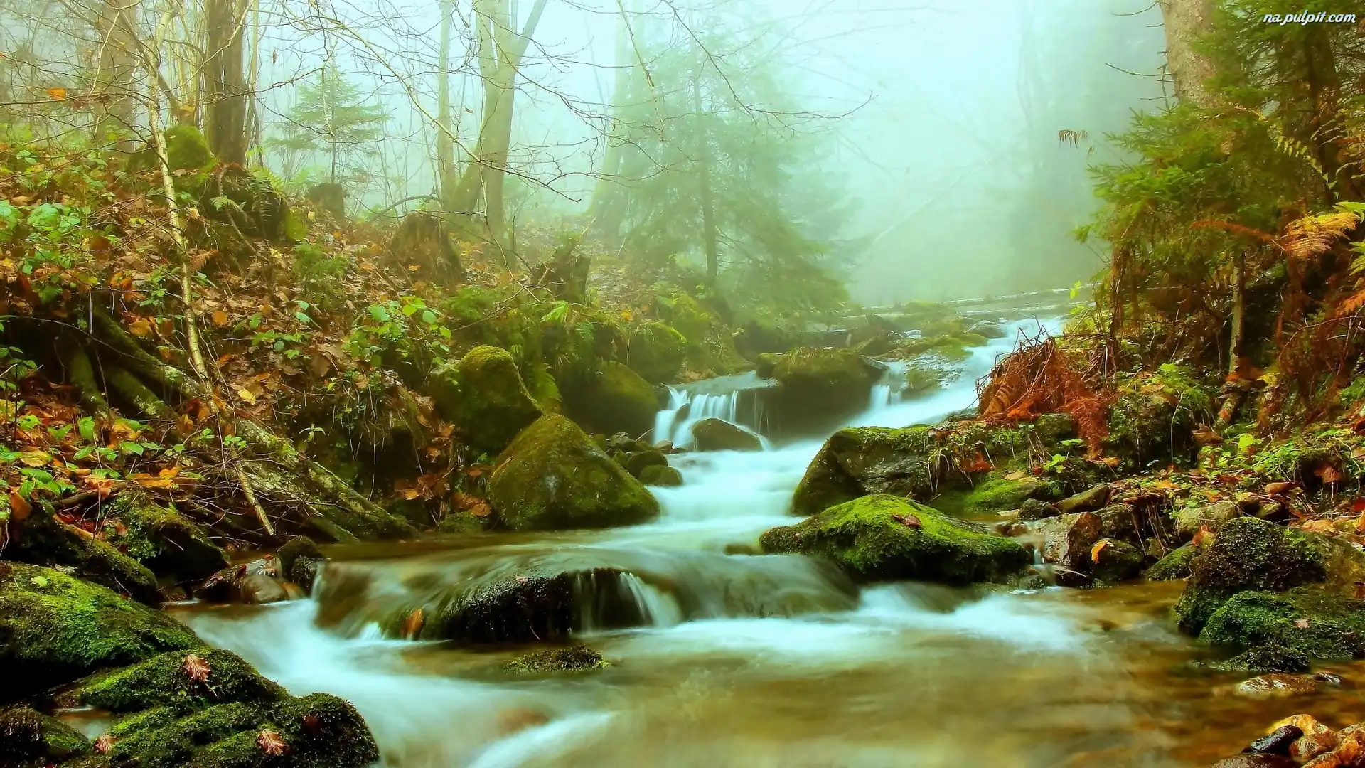 Mgła, Potok, Las, Jesienny, Kamienie Na Pulpit