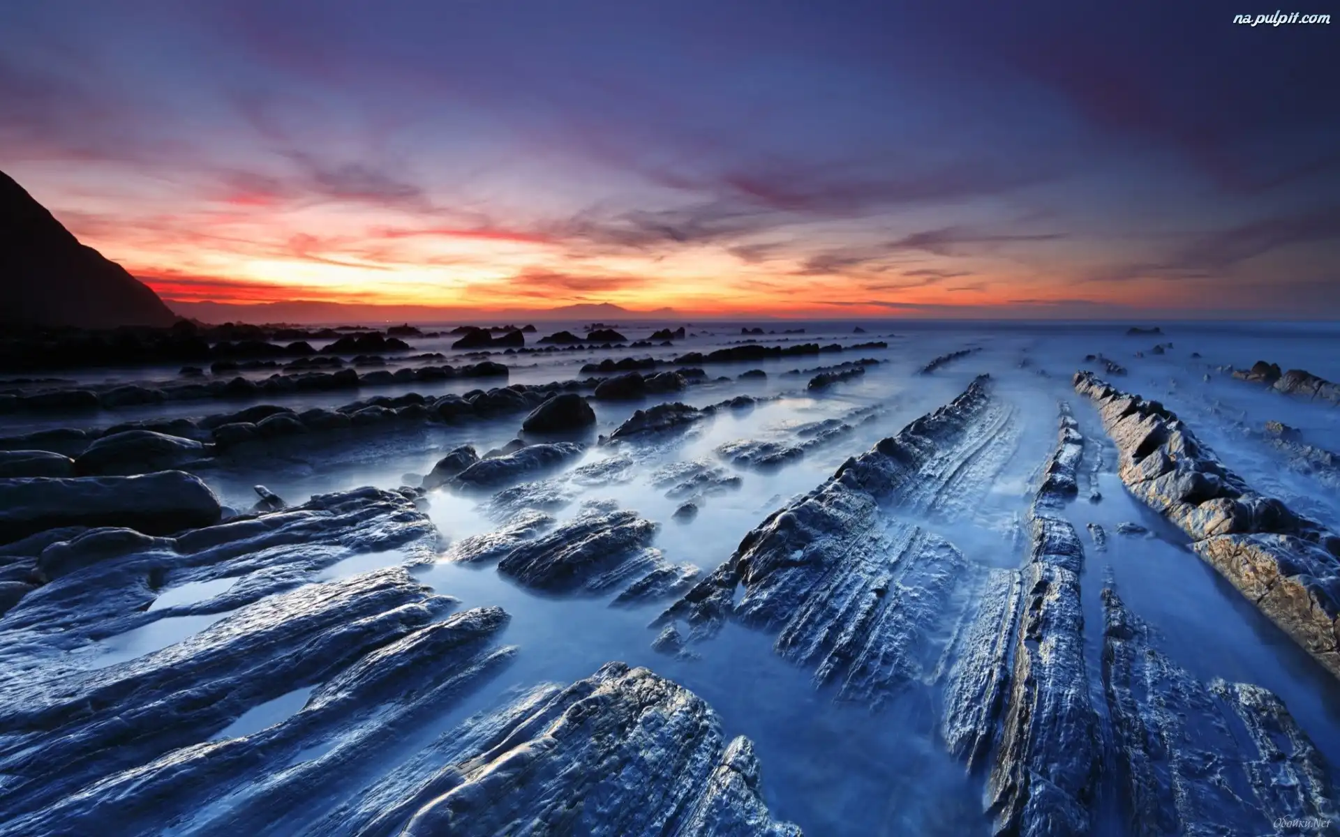 Mgła, Zachód, Plaża, Kamienista, Słońca Na Pulpit