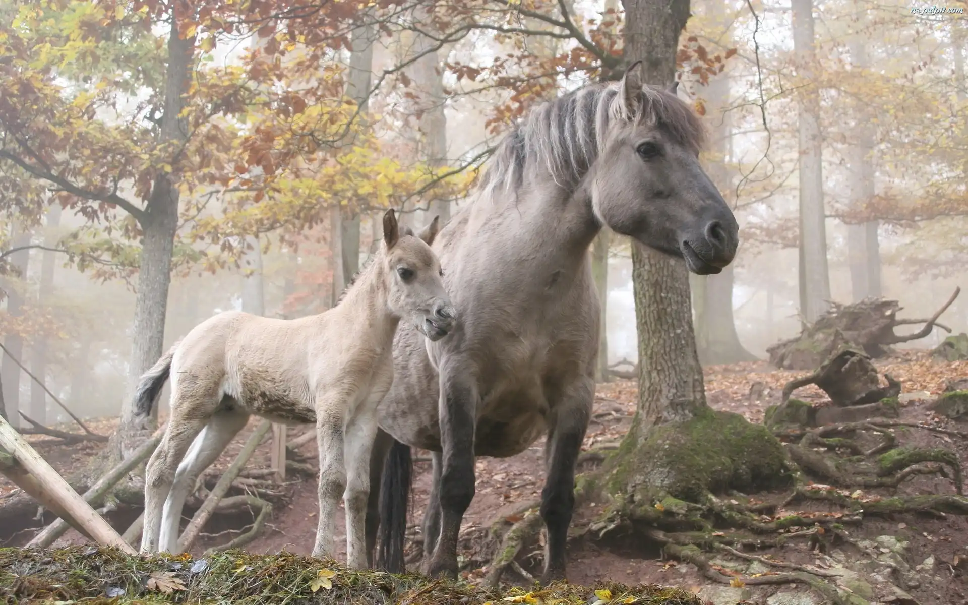 Mgła, Źrebak, Koń, Las
