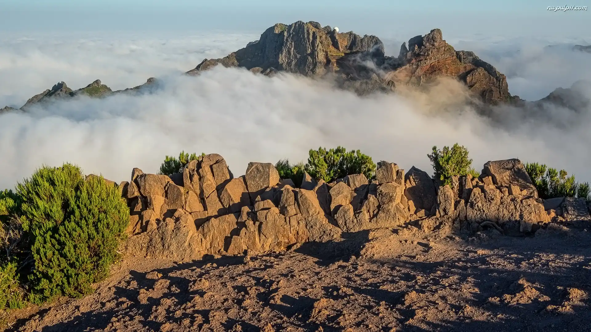 Rośliny, Góry, Chmury, Mgła, Skały, Krzewy Na Pulpit
