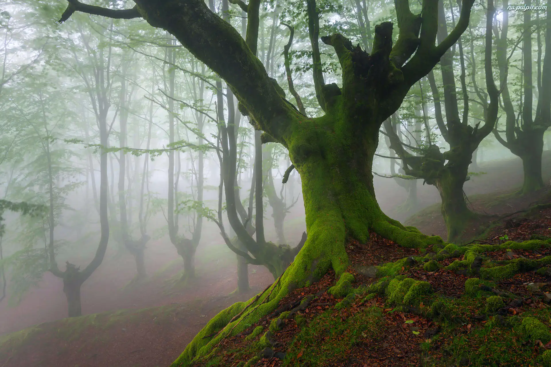 Mgła, Drzewa, Las, Mech Na Pulpit