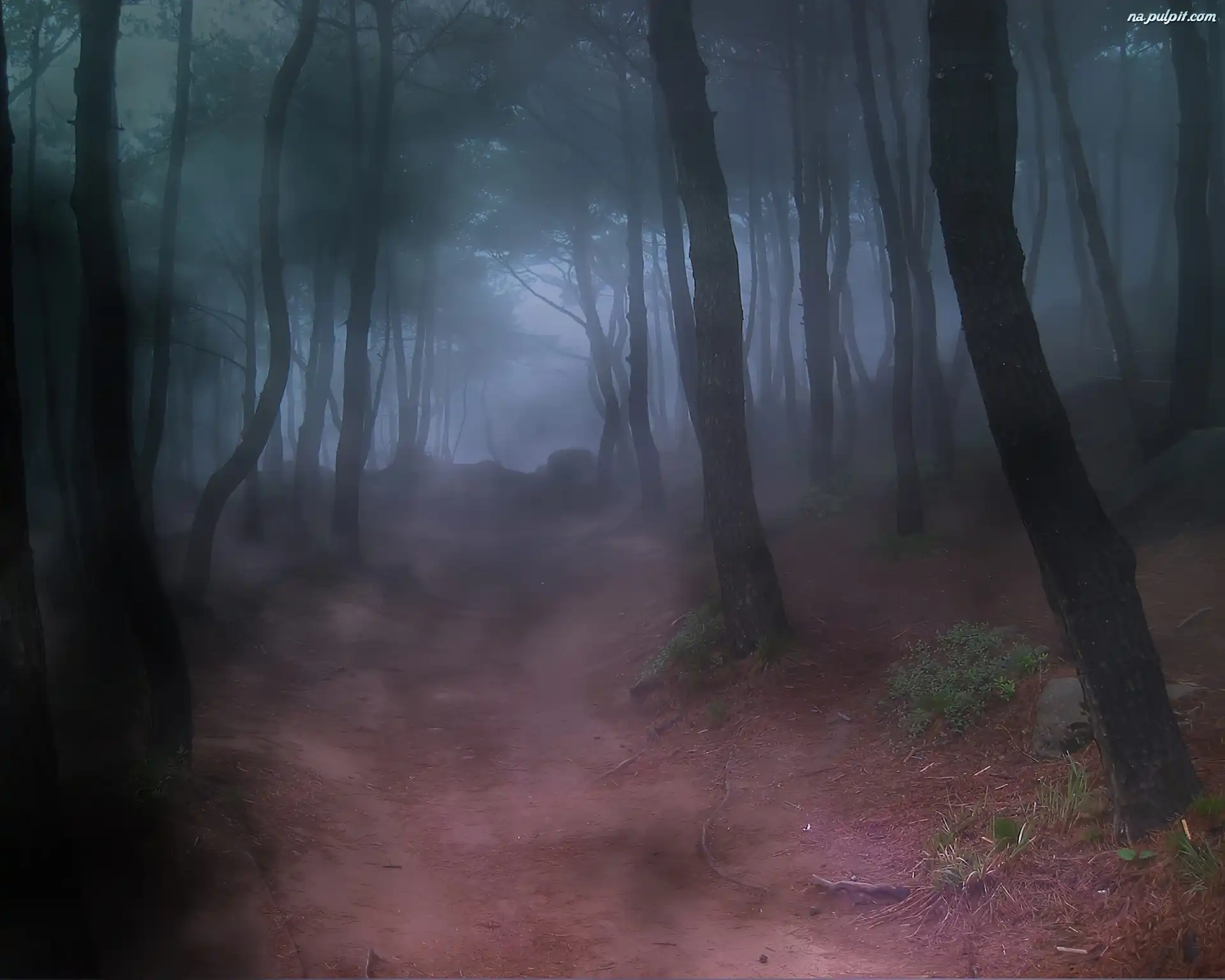 Mgła, Niebieski, Fioletowy, Drzewa, Las, Droga Na Pulpit