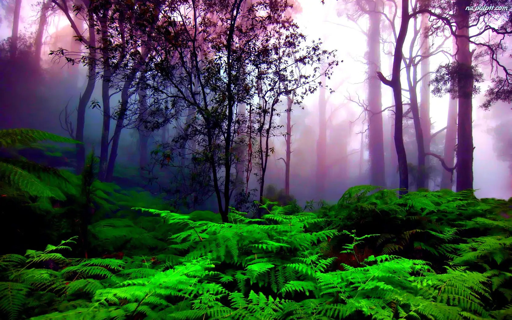 Mgła, Paproć, Las, Fioletowa Na Pulpit