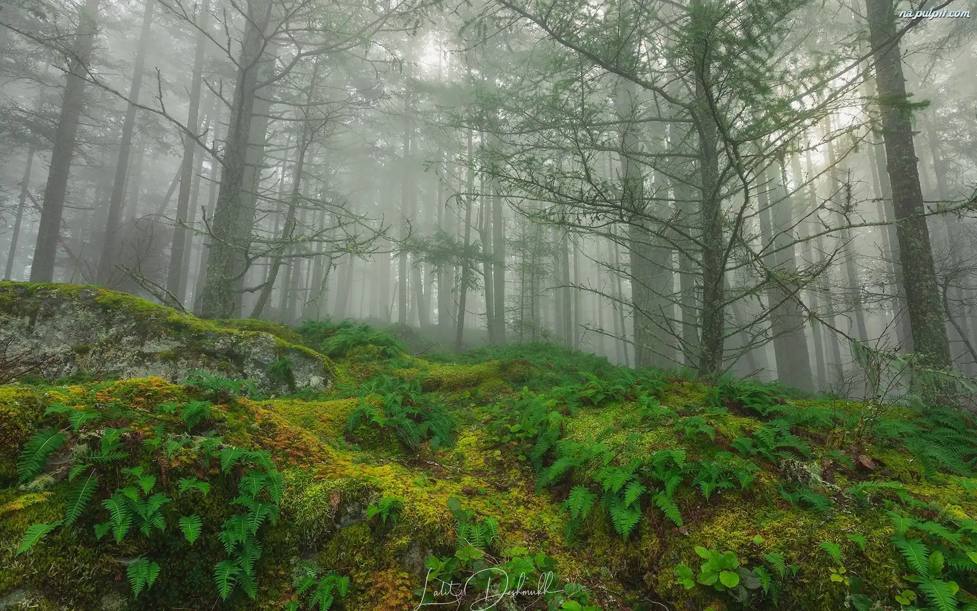 Las, Drzewa, Paprocie, Mgła Na Pulpit