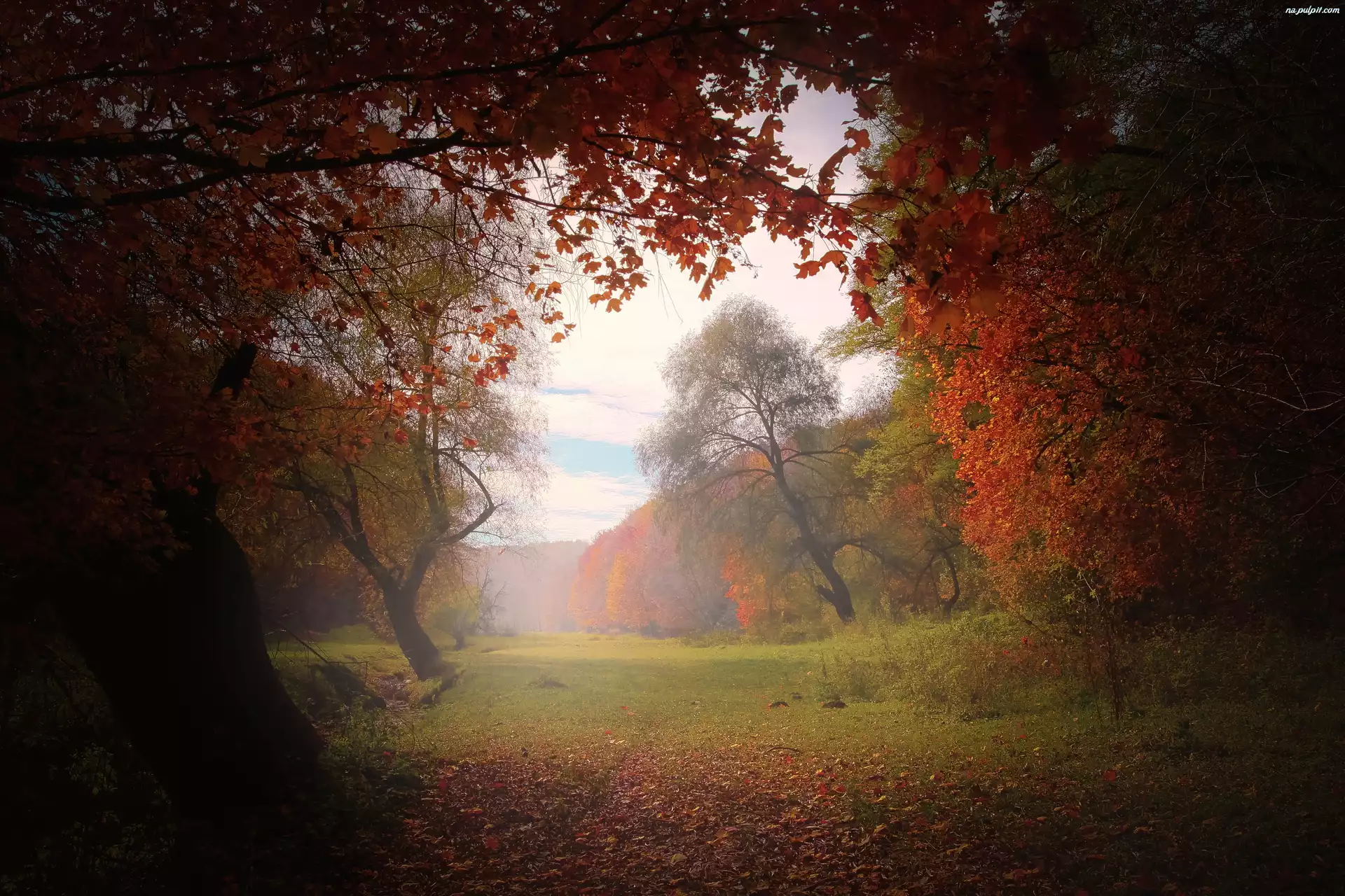 Mgła, Polana, Las, Jesień