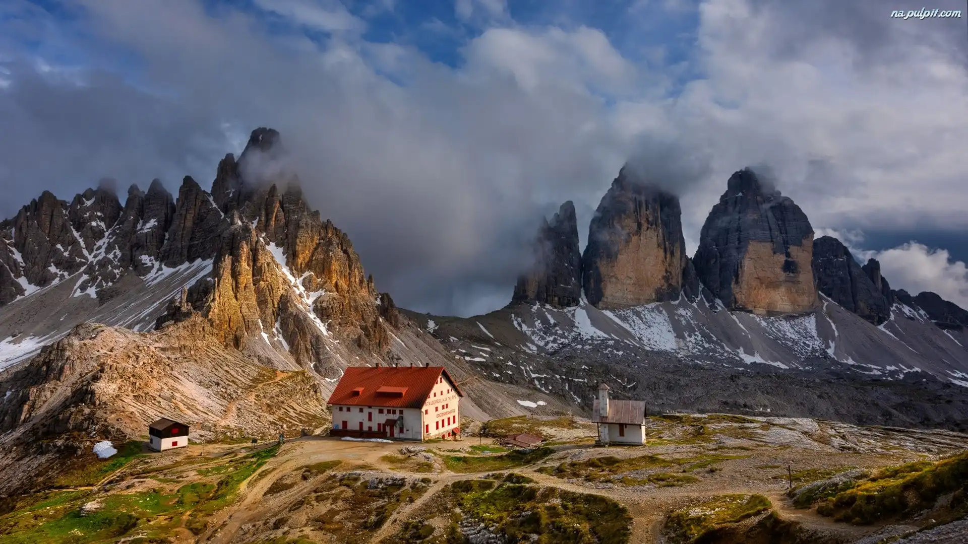 Góry Tre Cime di Lavaredo, Dom, Chmury, Dolomity, Włochy, Mgła Na Pulpit