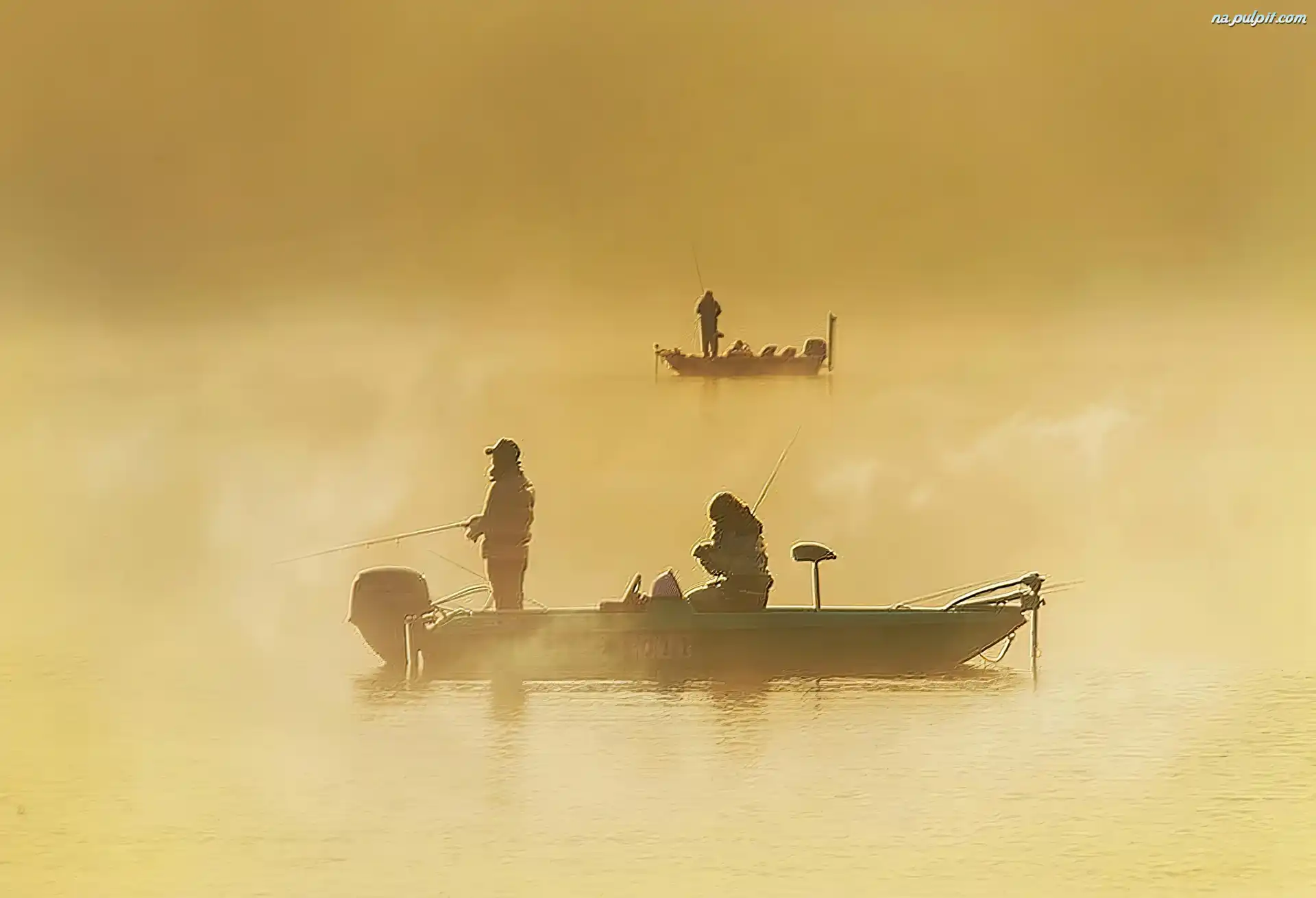 Mgła, Łodzie, Wędkarze, Ludzie, Woda Na Pulpit