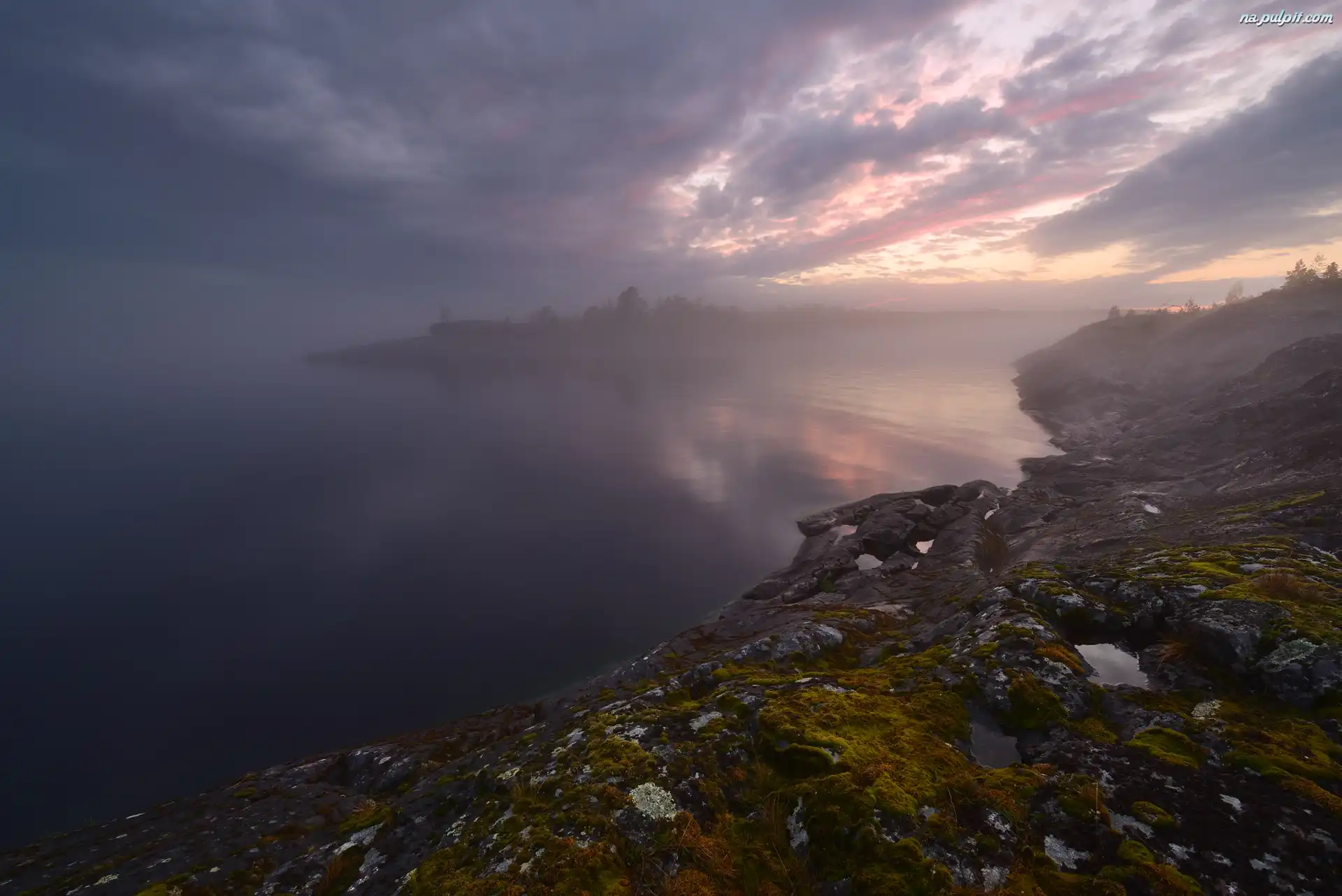 Rosja, Brzeg, Republika Karelii, Chmury, Skały, Jezioro Ładoga, Mgła Na Pulpit