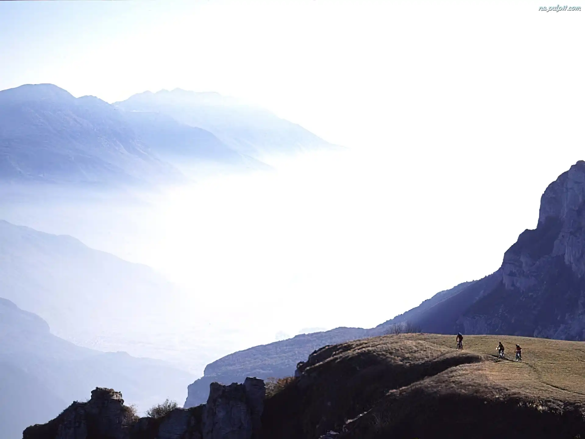 mgła, Góry, Rower, niebo Na Pulpit