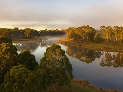 Rzeka, Zielone, Drzewa, Mgła Na Pulpit