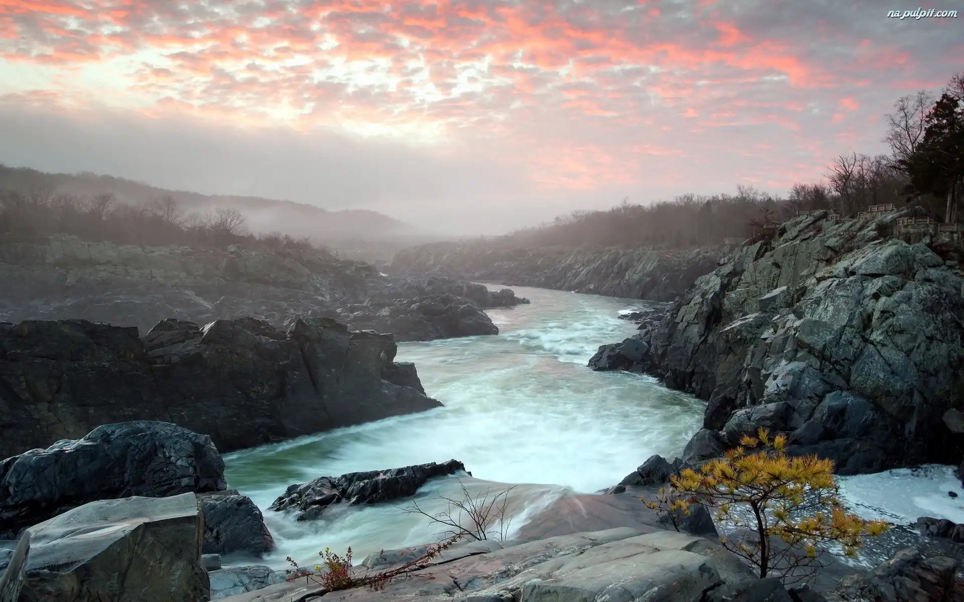 Mgła, Skały, Rzeka, Chmury Na Pulpit