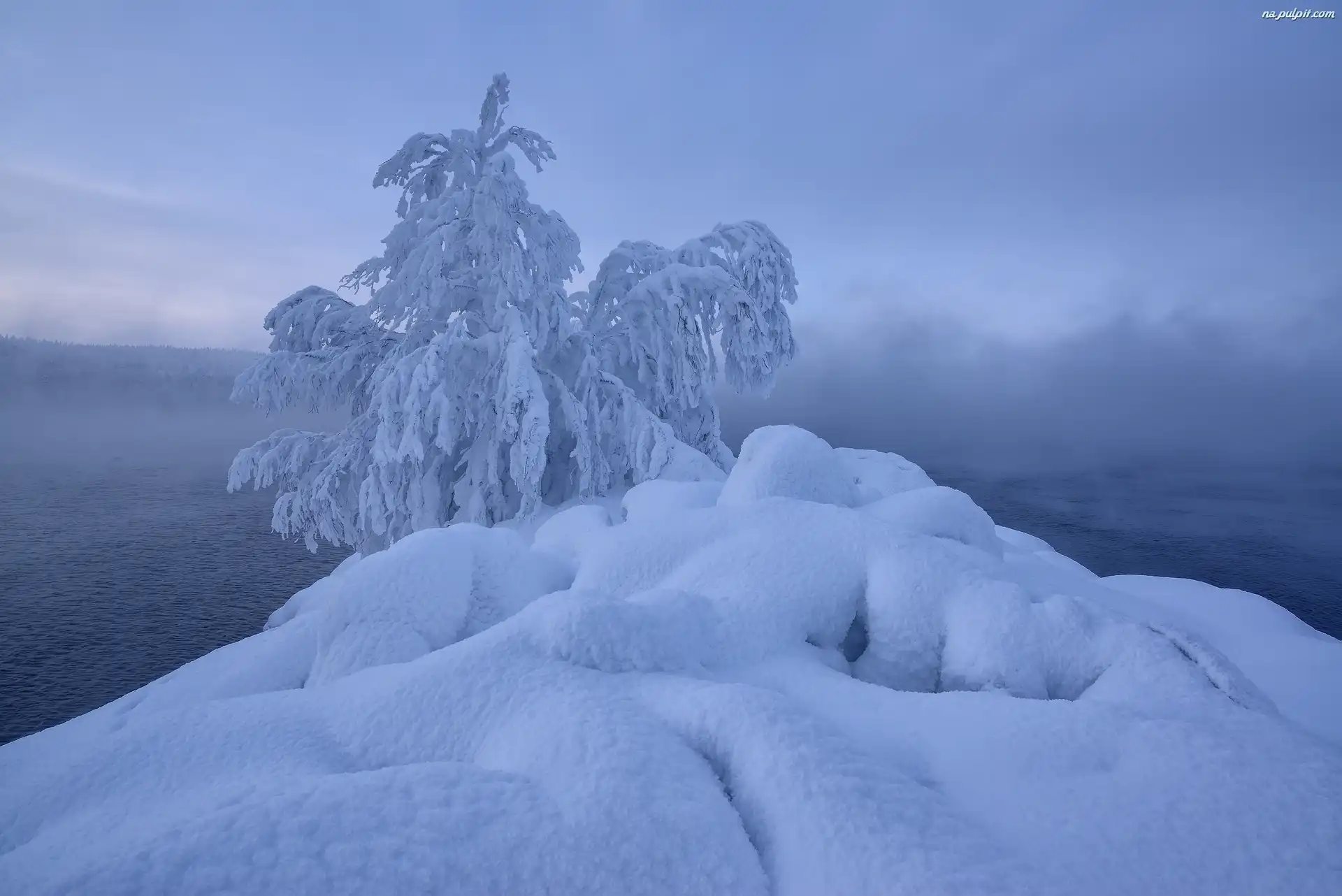 Mgła, Ośnieżone, Zima, Rzeka, Drzewa Na Pulpit