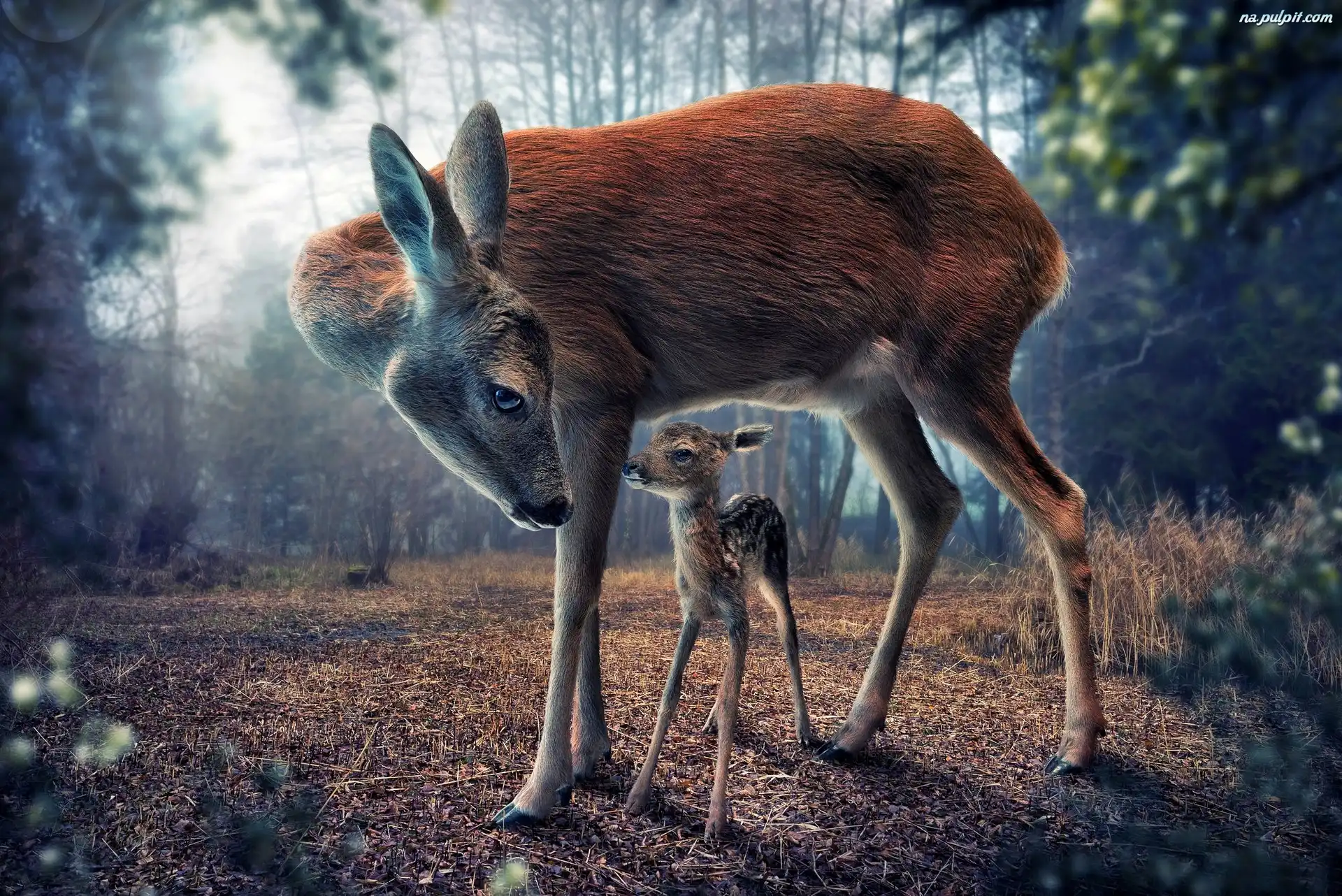 Mgła, Las, Młode, Sarna, Poranek Na Pulpit