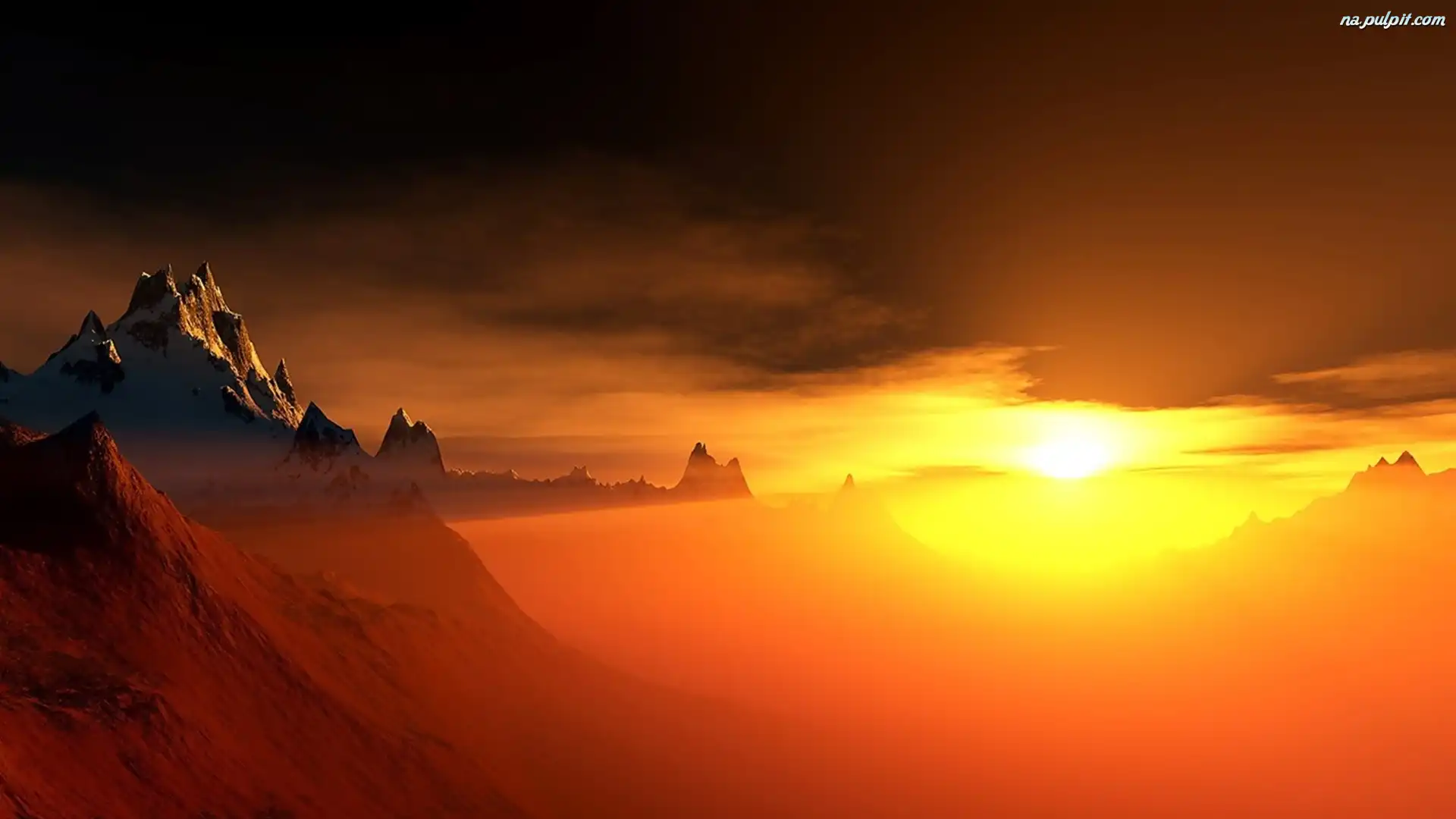 Mgła, Wschód, Górskie, Szczyty, Słońca Na Pulpit