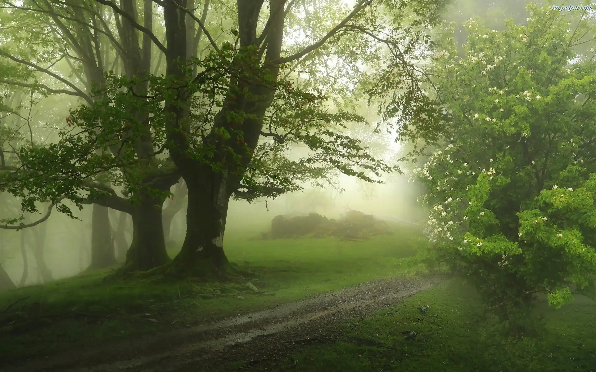Ścieżka, Trawa, Las, Mgła, Drzewa Na Pulpit
