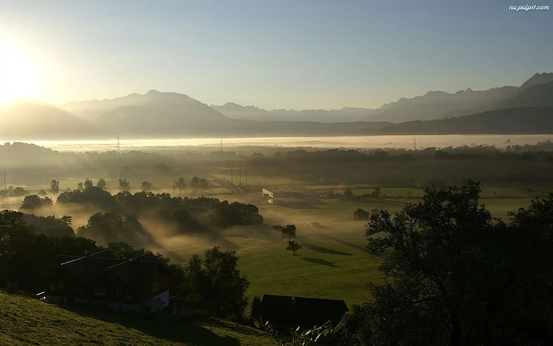 Mgła, Słońca, Wschód, Góry Na Pulpit