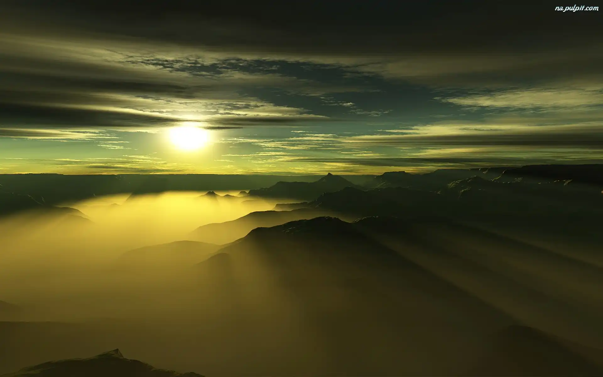Mgła, Słońca, Wschód, Góry Na Pulpit